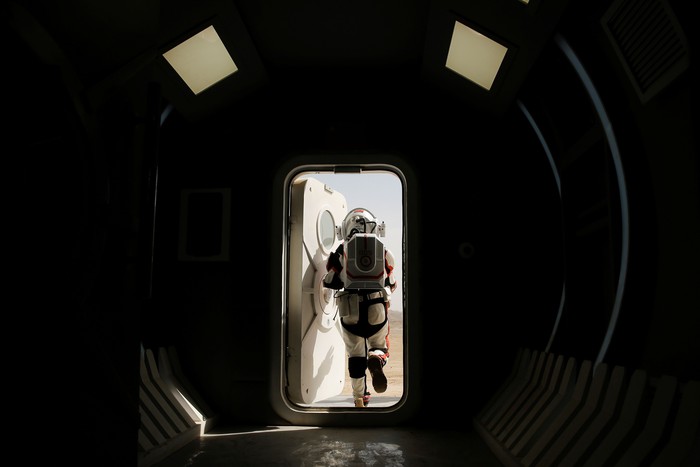 Menempati area seluas seperlima lapangan rugby, markas tersebut memiliki banyak modul yang saling terhubung lengkap dengan rumah kaca dan ruang dekompresi tiruan. Thomas Peter/Reuters.