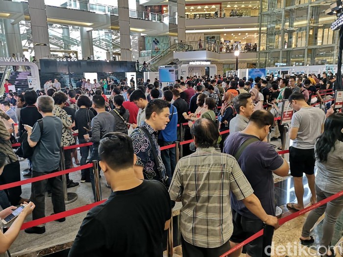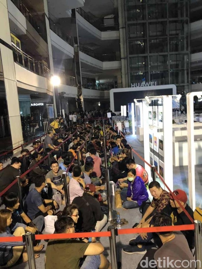 Para konsumen sudah banyak yang mengantre dari pagi hari. Foto: Huawei