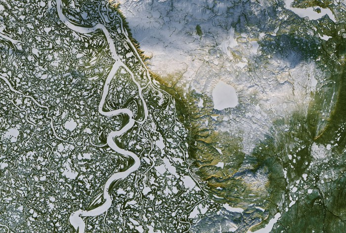Sungai Mackenzie di Kanada dengan beberapa titik beku. Foto: NASA