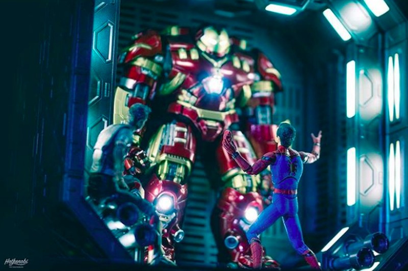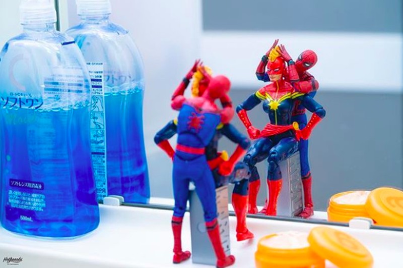 Spiderman merapikan rambut Captain Marvel. Hot.kenobi tampak sangat niat dalam merancang foto action figure-nya dan terlihat hidup. Foto: hot.kenobi