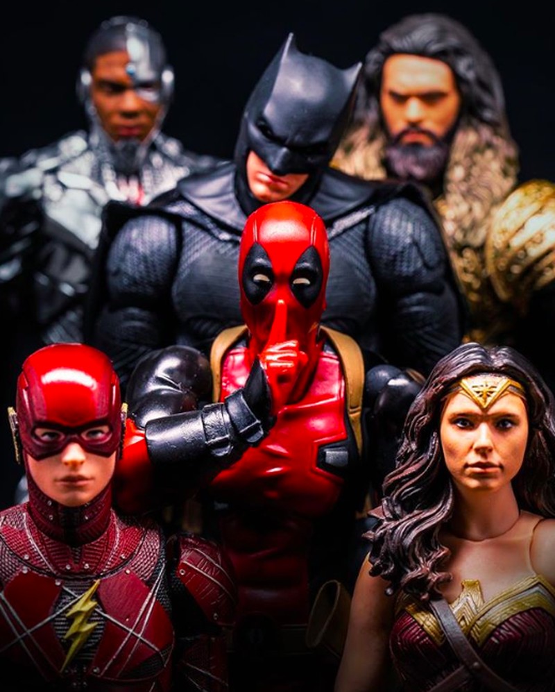 Deadpool menyusup ke poster film Justice League. Foto: hot.kenobi