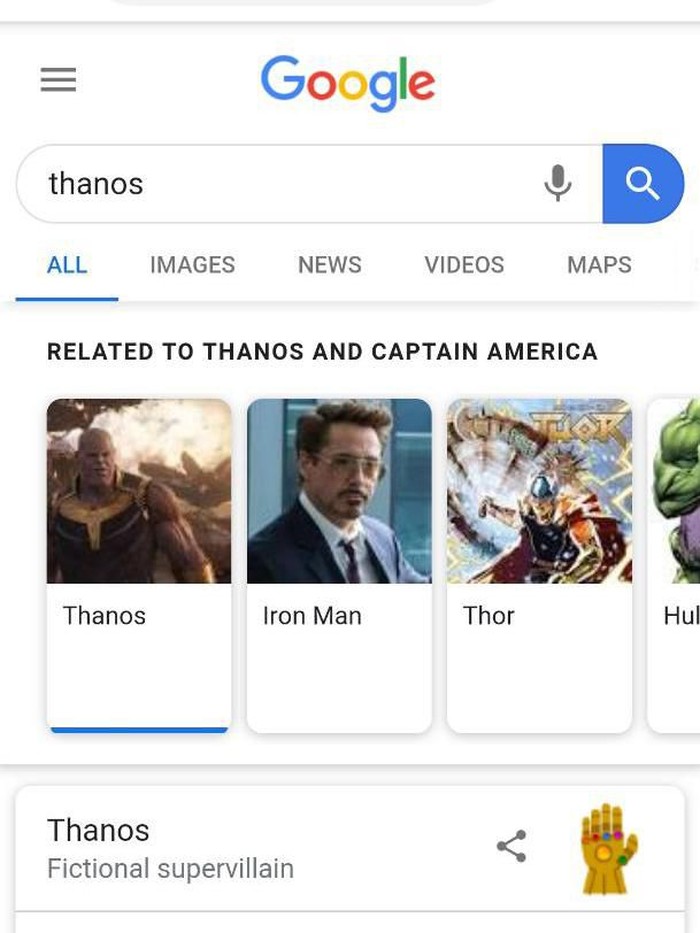 "Thanos" di Google Search sedang ramai seiring dengan pemutaran film Avengers: Endgame. (Foto: screenshot Google search)