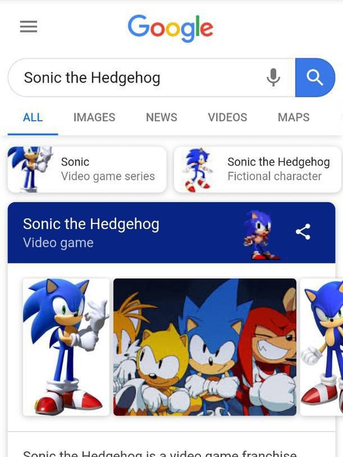 Mengetik "Sonic the Hedgehog" akan memunculkan ikon si landak biru. Mengkliknya akan membuat Sonic beraksi. (Foto: screenshot Google search)