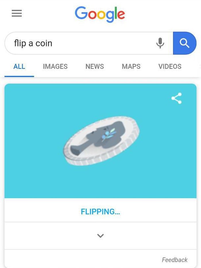 "Flip a coin" bisa di-search pakai Google buat seru-seruan kalau bingung di antara dua pilihan. (Foto: screenshot Google search)