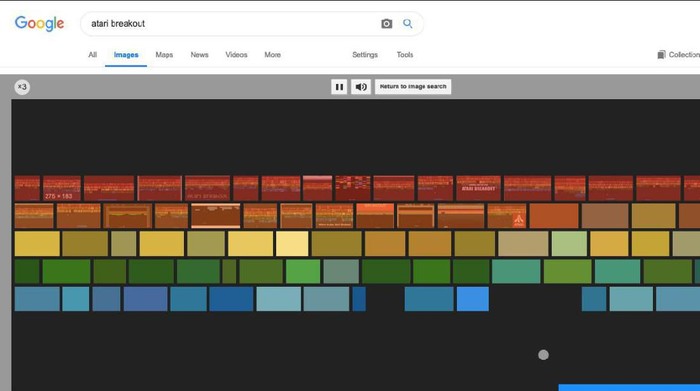 Mencari "Atari breakout" di pencarian gambar/image search bakal membuat hasil-hasil pencarian bersatu jadi blok dan kamu dapat bermain menghancurkannya. (Foto: screenshot Google search)
