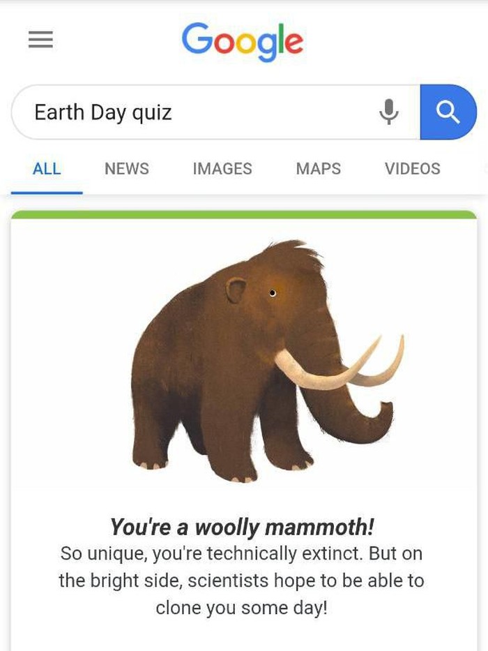 "Earth Day quiz" akan menghasilkan pencarian berupa kuis kamu mirip jenis hewan apa. (Foto: screenshot Google search)