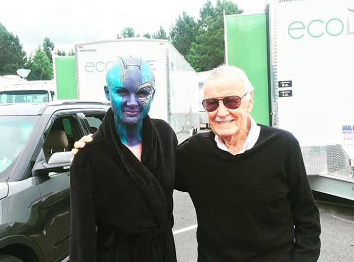 Gillan sebagai Nebula saat bersama mendiang Stan Lee. (Foto: Instagram/karengillanofficial)