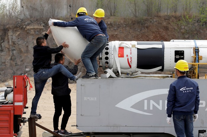 Persiapan sebelum uji coba NewLine Baby yang dirancang ulang alik alias dapat dipergunakan berulang kali. Startup di bidang luar angkasa cukup mewabah di China dengan sekitar 15 perusahaan semacam itu berlomba menghadirkan produk andalannya. Foto: Reuters