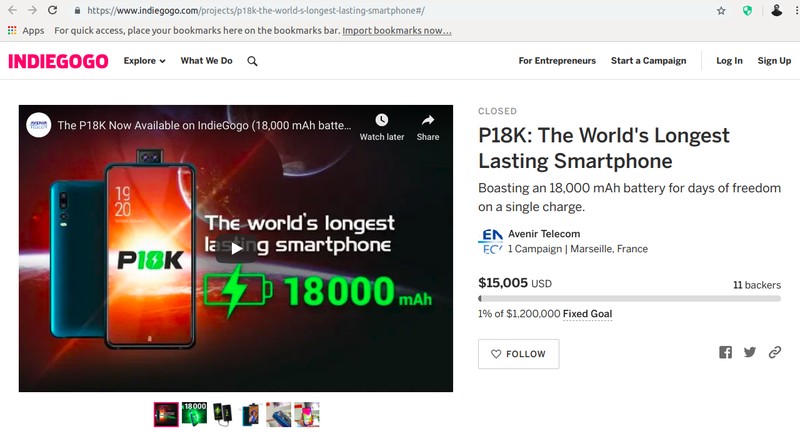 Rata-rata ponsel di pasaran memiliki baterai 3.000 - 5.000 mAh. Tapi ponsel satu ini tampil beda, punya kapasitas super besar 18.000 mAh. Foto: Dok. Avenir Telecom via Indiegogo