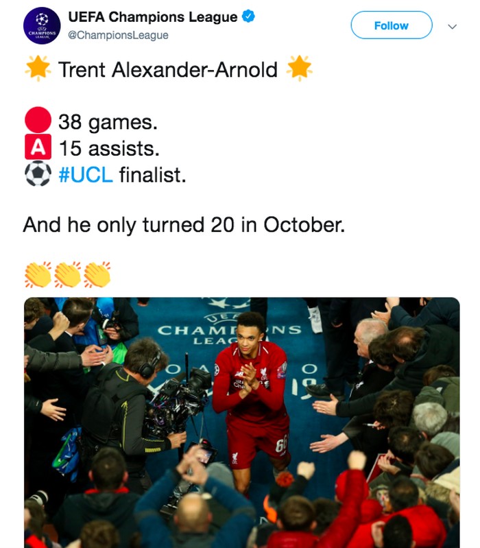 Selain meme, banyak pula diposting di media sosial soal statistik. Seperti kehebatan Trent Alexander Arnold ini. Foto: istimewa