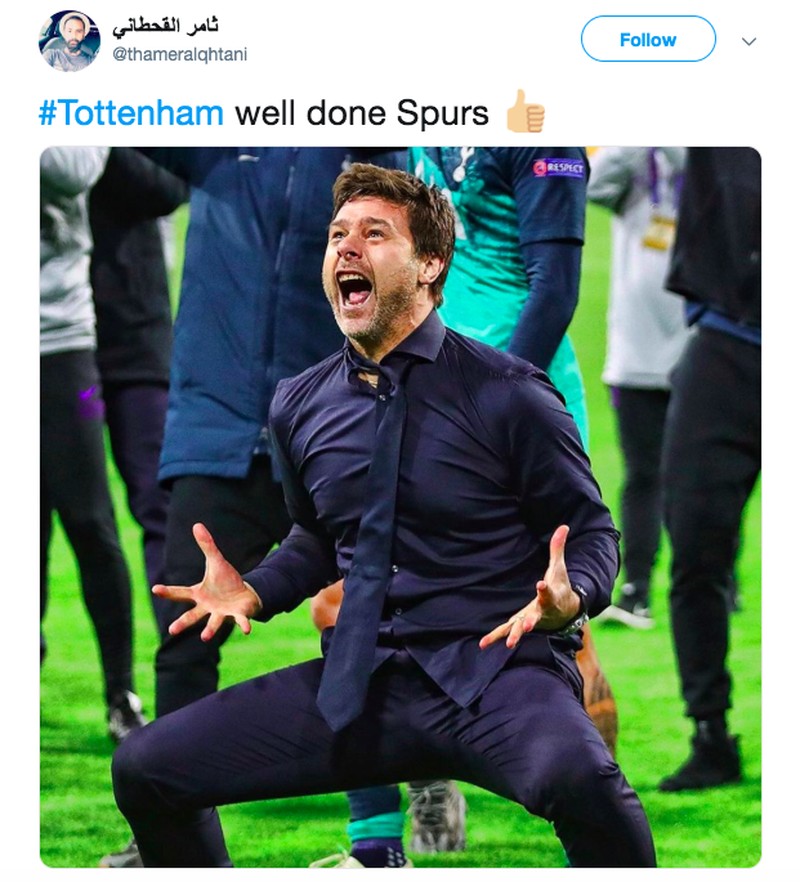 Netizen pun banyak memajang euforia pelatih Spurs, Mauricio Pochettino. Foto: istimewa