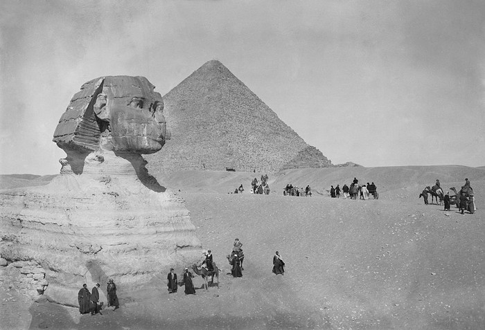 Piramida di Giza dijepret pada tahun 1920-an. Bangunan ini selalu mengundang rasa kagum dan penasaran tentang bagaimana orang Mesir di masa silam dapat membuat bangunan yang begitu megahnya. Foto: Getty Images