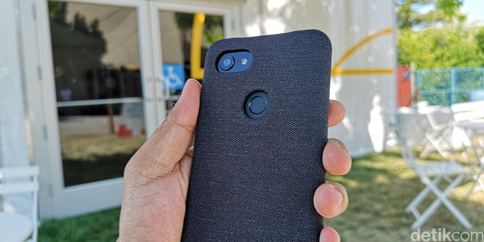Ciri khas Pixel bisa kita lihat di bagian punggung ponsel yang didukung fitur fingerprint. Foto: Agus Tri Haryanto/detikINET