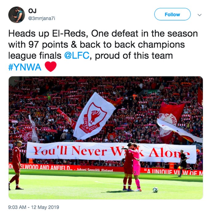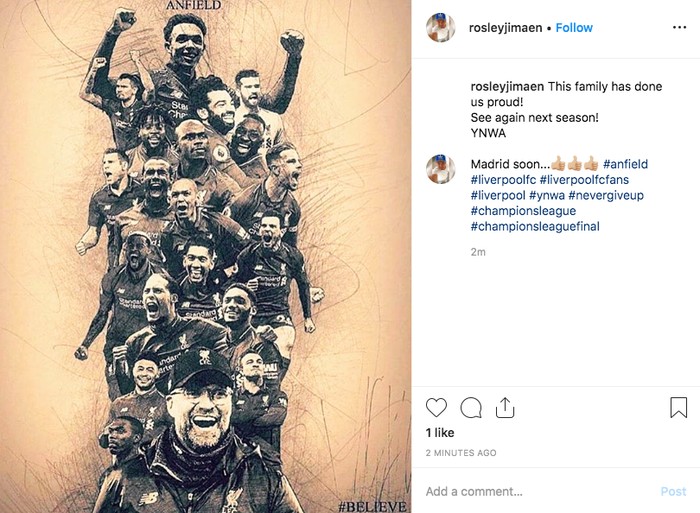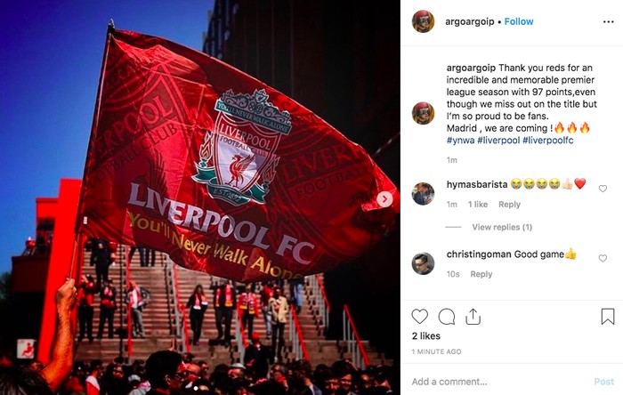 Banyak fans mengutarakan rasa bangga atas perjuangan Liverpool melalui media sosial. Foto: istimewa