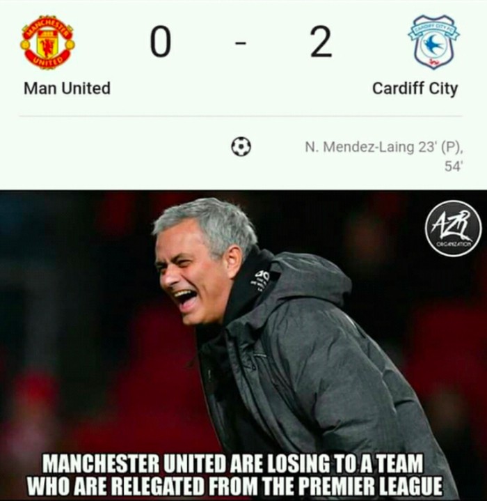 Manchester United di sisi lain kalah 0-2 di kandang sendiri oleh tim lemah Cardiff City yang sudah terdegradasi. Kasihan sekali. Foto: istimewa