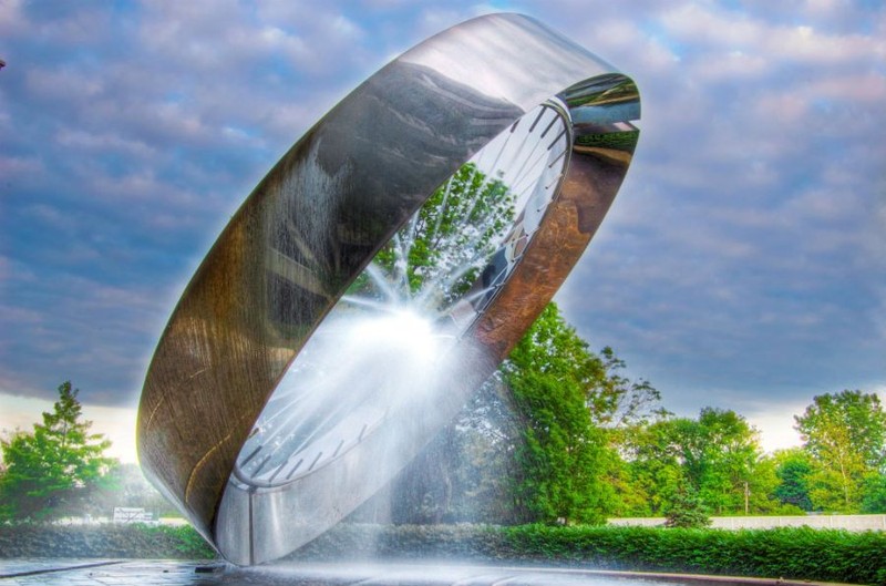 71 Fountain, Ohio, AS. Air mancur spektakuler ini menyerupai cincin raksasa. Di sisi dalamnya ada banyak lubang yang semuanya menembakkan air ke satu titik di tengah konstruksi. Foto: via Brainberries
