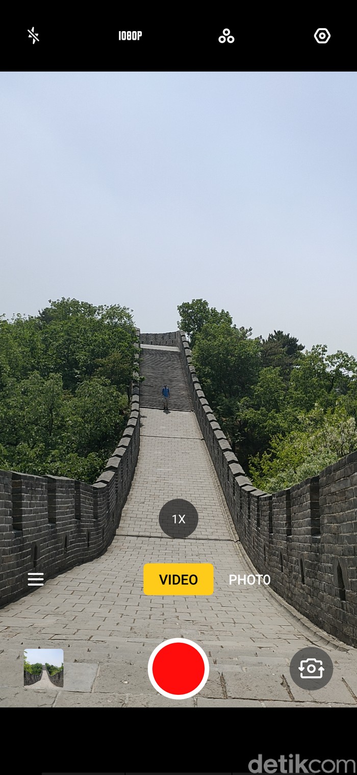 Tampilan antarmuka saat hendak mengabadikan pemandangan dari Tembok Besar China pakai kamera utama Realme X. (Foto: Devi Setya/detikINET)