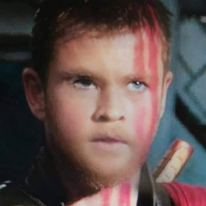 Ngeri! Thor jadi bocah brewokan dengan tampang serius. (Foto: Dok. 9gag)