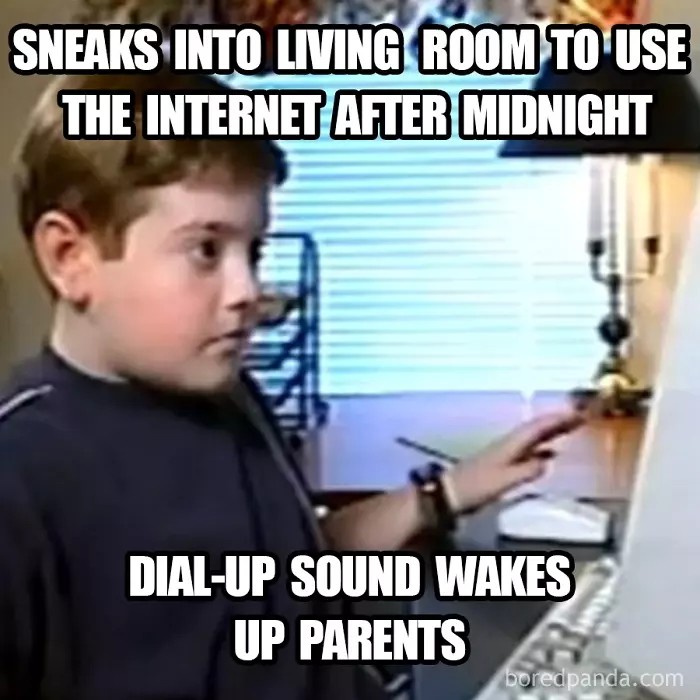 Diam-diam menyelinap nyalain komputer supaya nggak ketahuan ortu, tapi suara modem dial up-nya itu lho... Berisik banget deh! (Foto: Boredpanda.com)