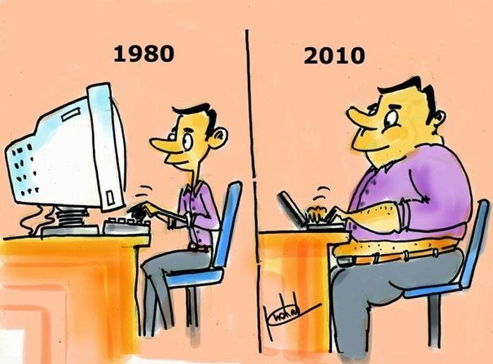 Komputer semakin kecil, namun manusianya makin "besar" karena malas bergerak. (Foto: justsomethingcreative)