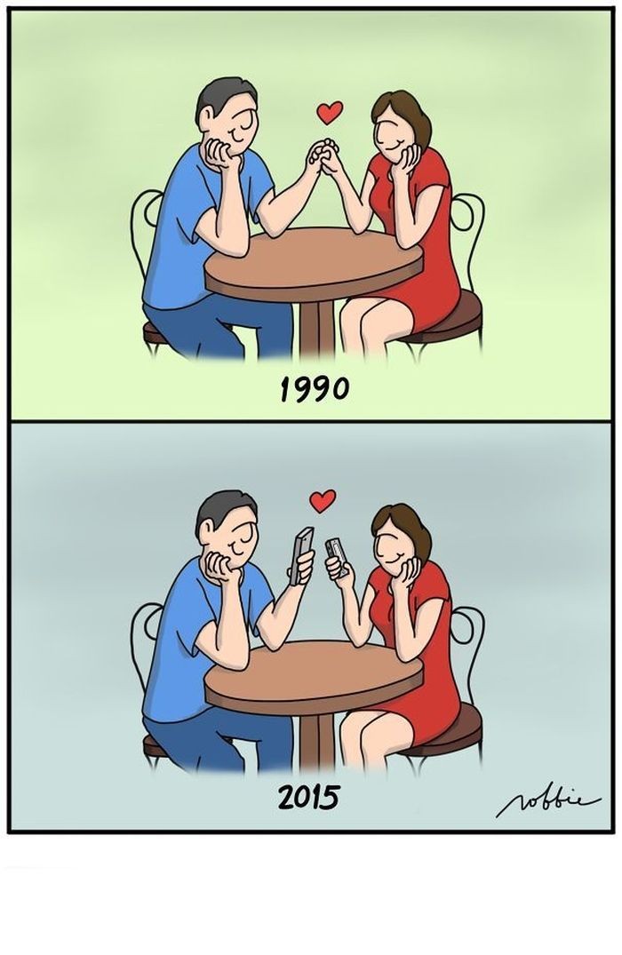 Dulu saling berpegangan tangan, kini sibuk memegang ponsel masing-masing. (Foto: justsomethingcreative)