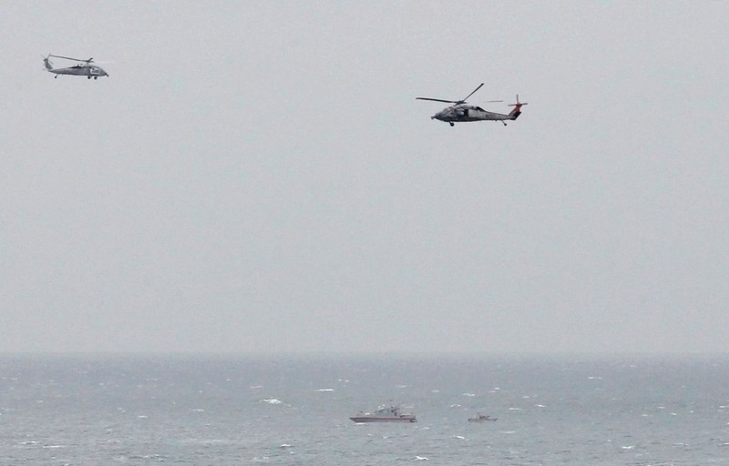 Helikopter Sea Hawk mengantar kargo. Foto: Reuters
