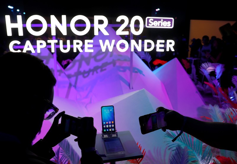 Mengusung desain warna-warni kemilau, Honor 20 menjadi ponsel flagship yang lebih terjangkau dibanding kompetitor. Foto: Reuters