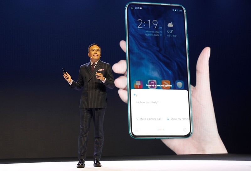 “Tak peduli apa yang terjadi, tak peduli tantangan seperti apa, senyum saja dan selesaikanlah,” sebut Zhao yang jelas merujuk ‘perang’antara induk perusahaan Honor, Huawei, dengan pemerintah Amerika Serikat. Foto: Reuters