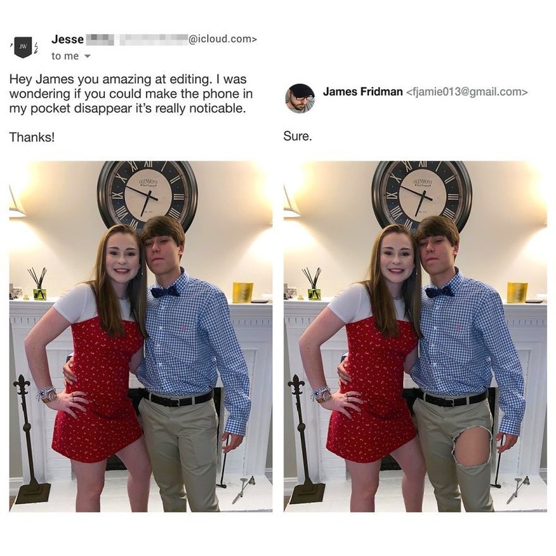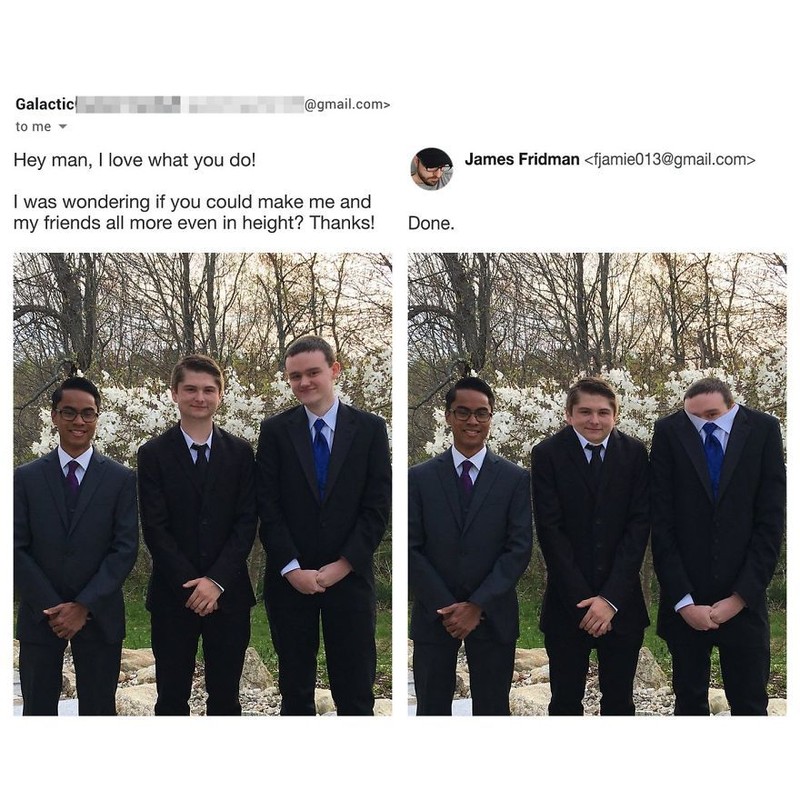 Minta tinggi temannya ditambah agar sejajar, dan inilah hasilnya. Foto: James Fridman