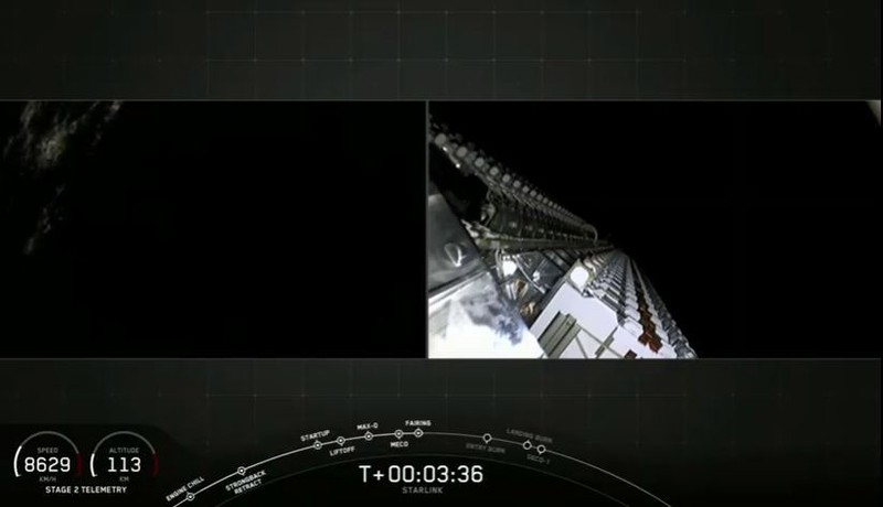 Penampakan muatan berisi 60 satelit internet setelah fairing atau hidung roket memisahkan diri. Foto: SpaceX