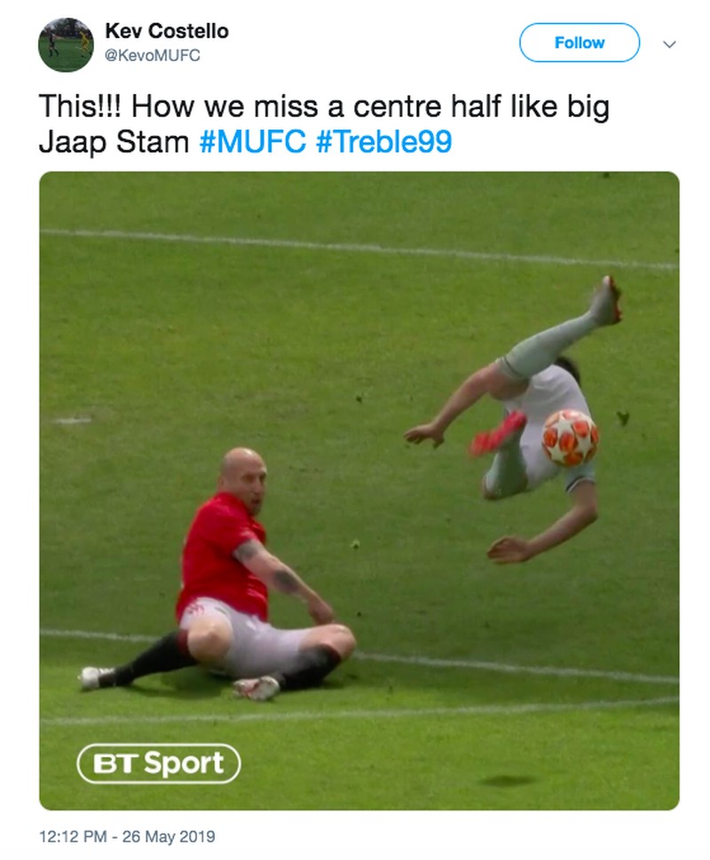 "Betapa kita merindukan bek tengah seperti si besar Jaap Stam," tulis netizen ini. Foto: Twitter
