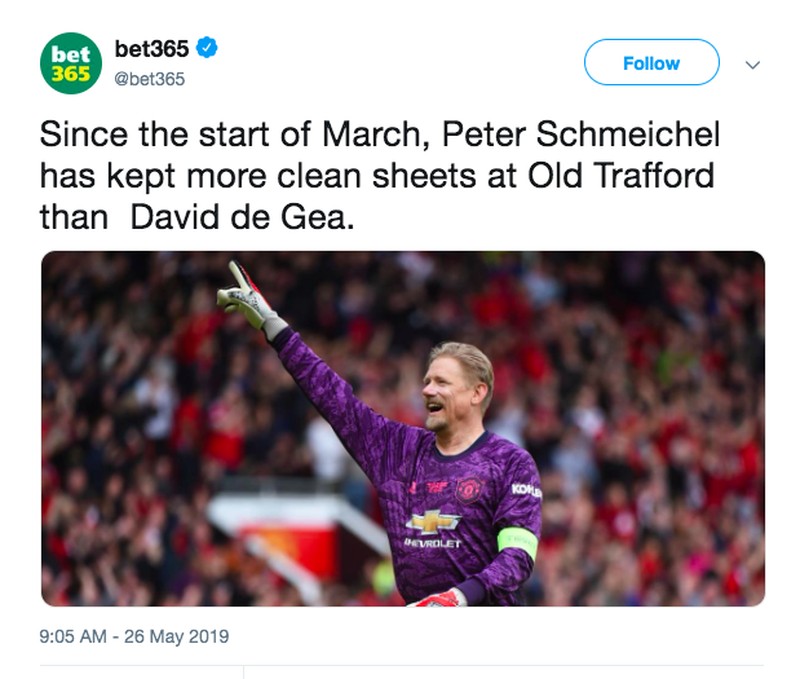 "Peter Schmeichel punya lebih banyak clean sheet dibanding David de Gea," tulis akun ini. Foto: istimewa