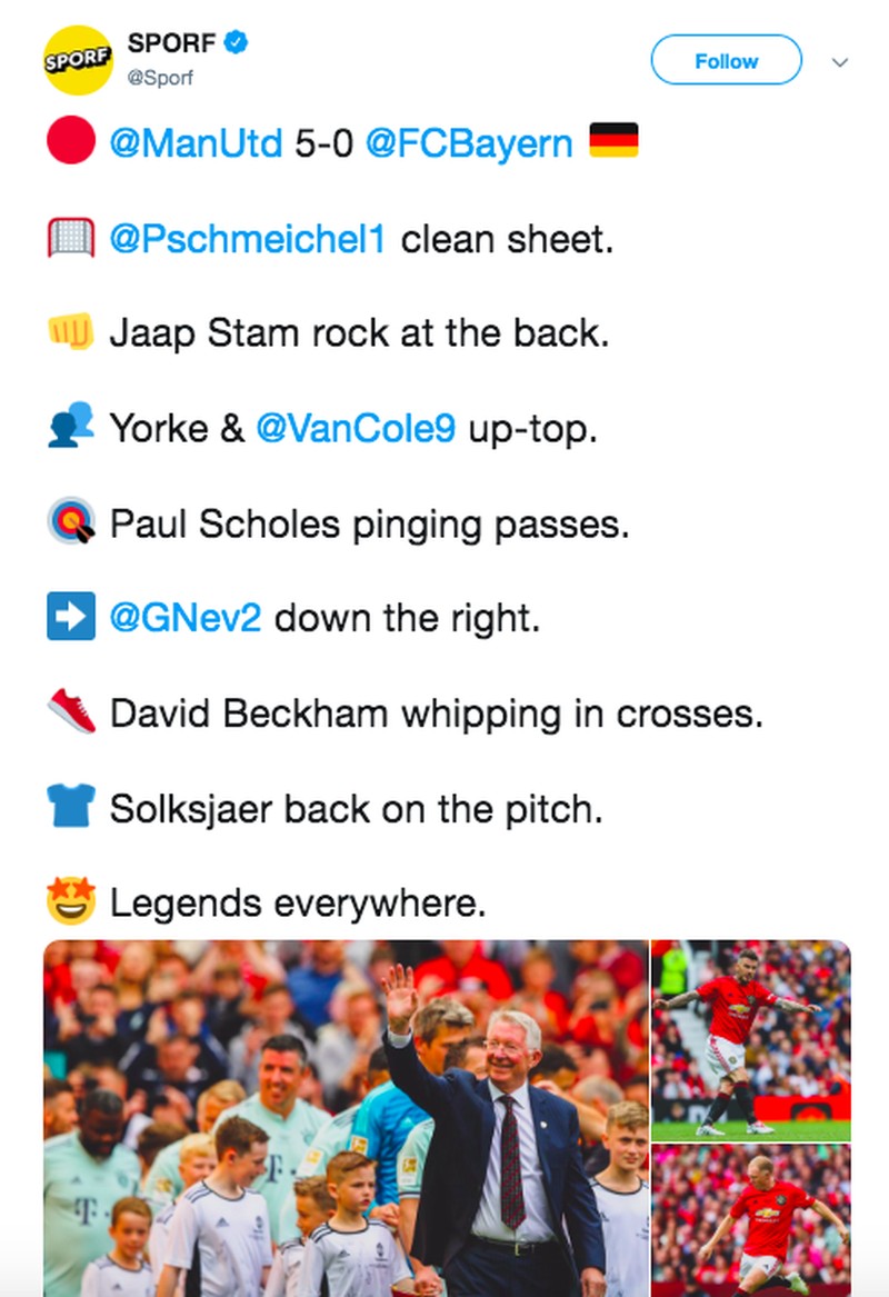 Pertandingan semalam memang sangat nostalgia, mantan bintang MU semua masih menunjukkan kehebatannya. Foto: Twitter