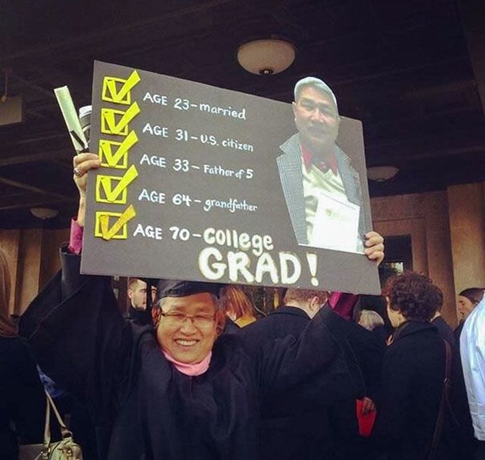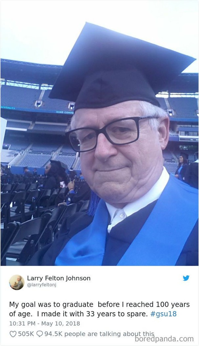 Dan akhirnya lulus di usianya 70 tahun. Foto: Boredpanda