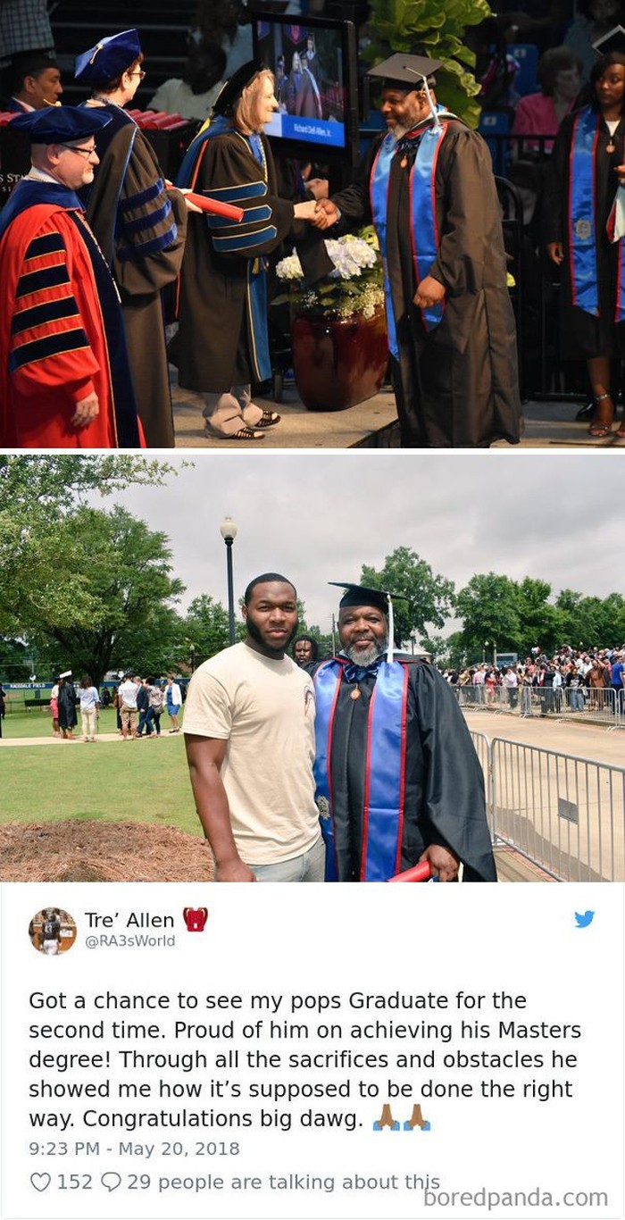 Lulus bersama sang ayah berusia 51 tahun sedangkan si anak 25 tahun di kelas yang sama pula. Foto: Boredpanda
