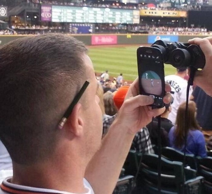 Cara nonton biar terlihat dekat memadukan teropong dan ponsel. (Foto: Brightside)