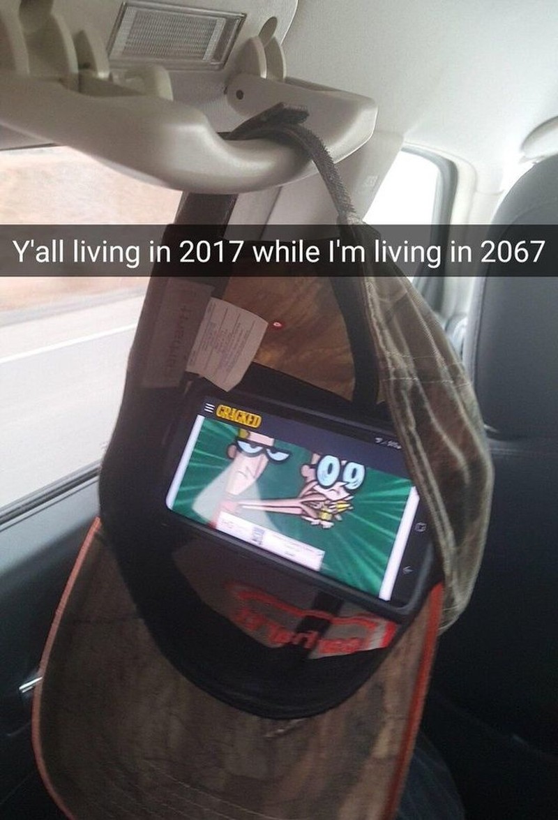 Biar gak pegel, pakai topi supaya bisa nonton di ponsel. (Foto: Brightside)