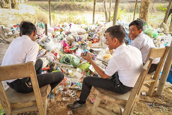 Sayangnya banyak warga yang enggan mengikuti dorongan tersebut. Hingga akhirnya sekolah memutuskan untuk meminta para murid membawa plastik sebagai ganti biaya sekolah.Β (Foto: Dok. Akshar Foundation)