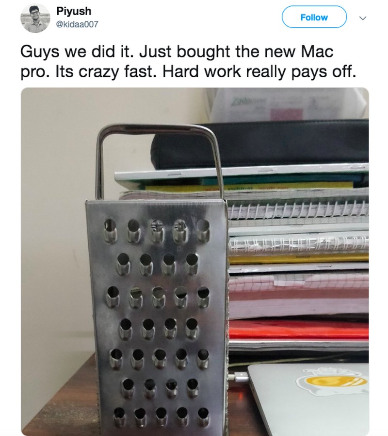 Kaya benar netizen ini, memarut keju dengan Mac Pro. Foto: istimewa