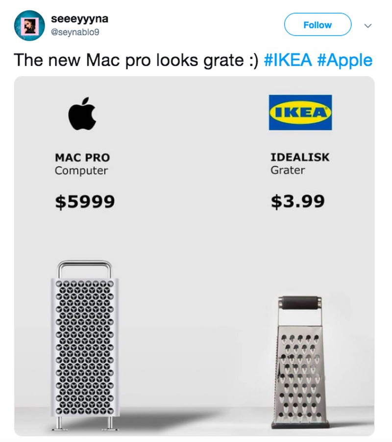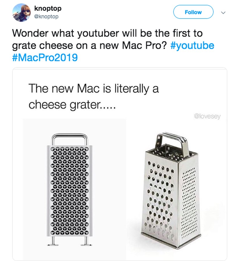 Mungkin akan ada YouTuber yang memarut keju dengan Mac Pro mengingat kemiripannya. Foto: istimewa