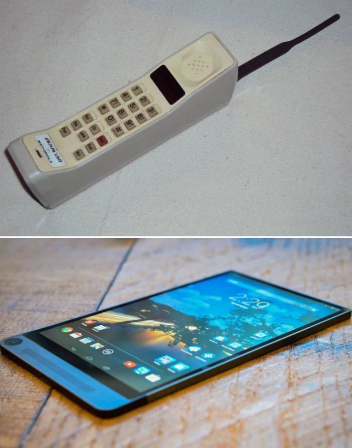 Motorola DynaTAC 8000X adalah salah satu contoh telepon seluler generasi awal yang beratnya bisa mencapai 1-2 kilogram, cuma bisa menaruh 30 nomor ponsel, dengan baterai yang hanya bisa bertahan 1 jam padahal di-charge seharian. Coba bandingkan dengan smartphone zaman sekarang.Β Foto: via Brainberries
