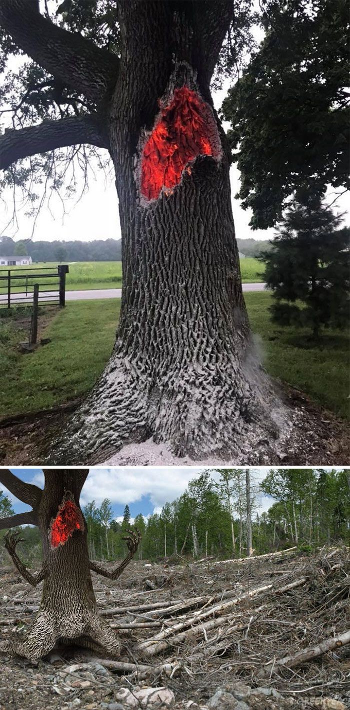 Sang pohon marah karena penembangan liar hutan. Foto: Reddit via Bored Panda