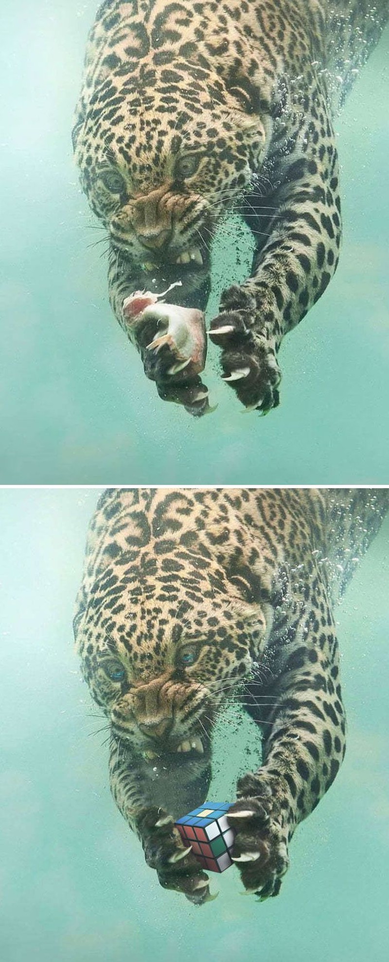 Ekspresi gregetan macan tutul kala main rubik. (Foto: Boredpanda)