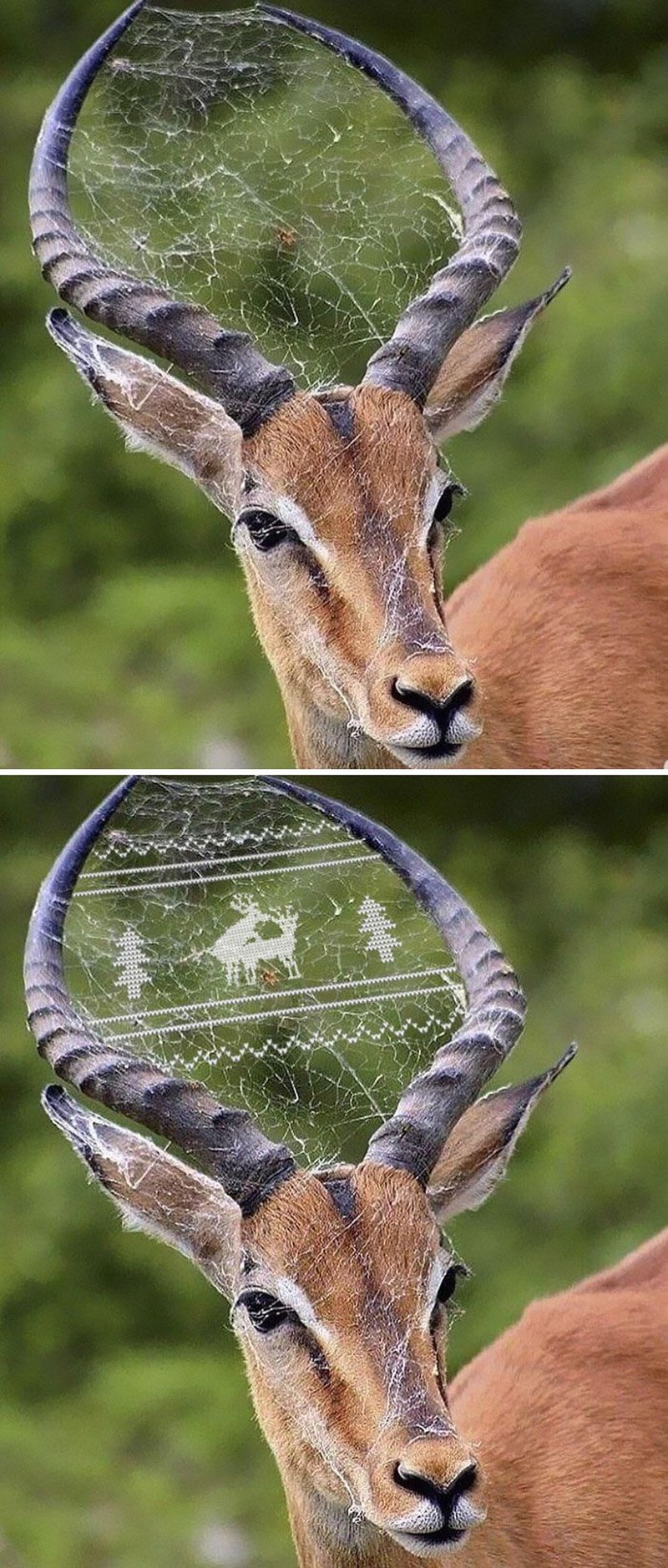 Jaring laba-laba di tanduk rusa. (Foto: Boredpanda)
