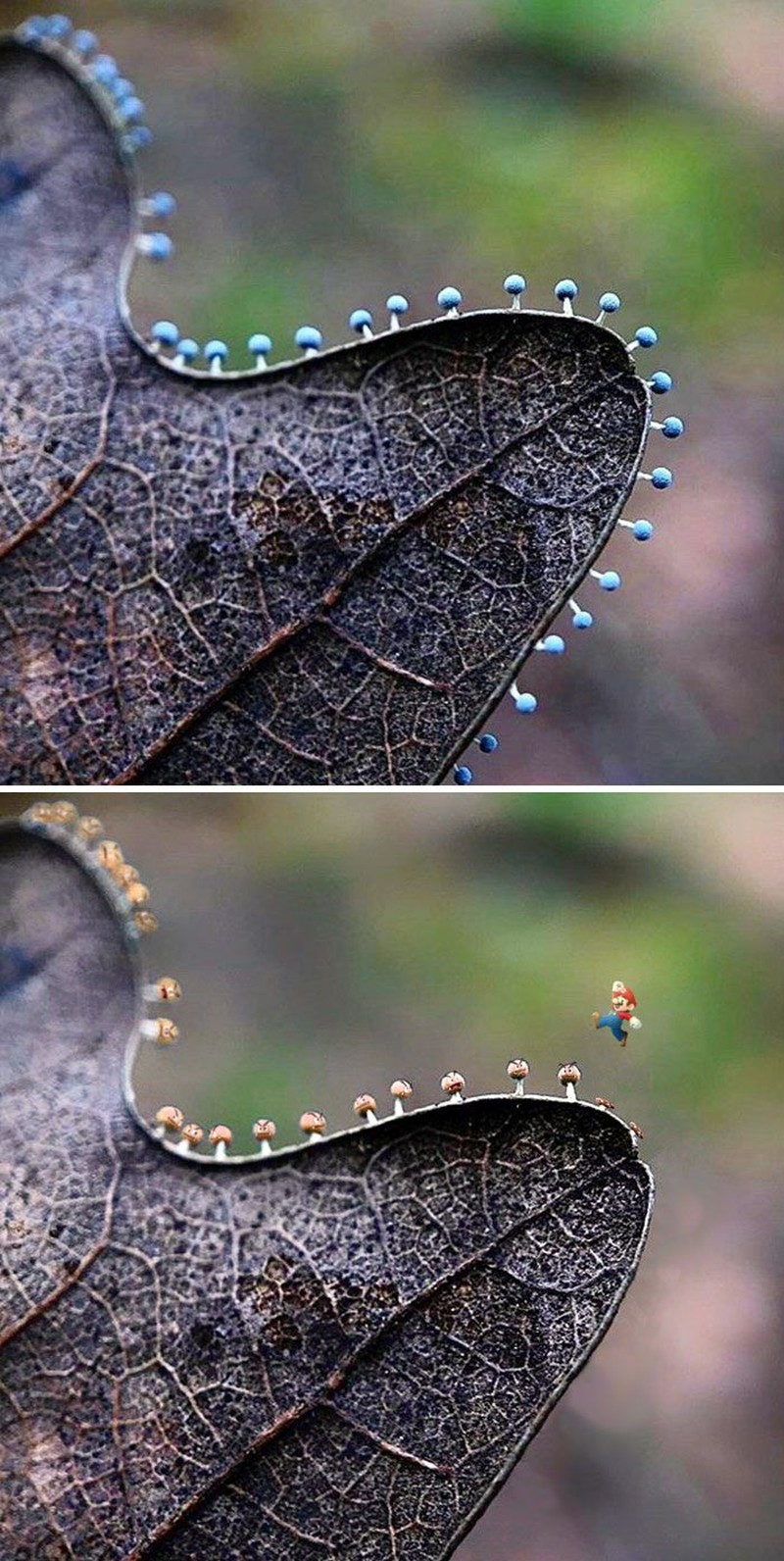 Foto micro jamur, yang disulap ada mario bros seolah sedang bermain. (Foto: Boredpanda)