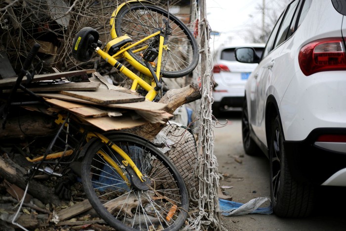 Sepeda-sepeda yang digeletakkan itu kemudian diambil oleh pihak Ofo untuk disusun kembali. Pada tahun 2017, armada sepeda Ofo tembus 10 juta unit. Foto: Reuters