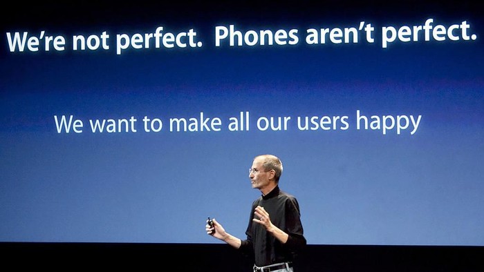 Masalah susah sinyal itu menjelma secara luas jadi skandal antena. Apple pun harus menggelar konferensi pers resmi lain padaΒ pertengahanΒ Juli, beberapa waktu setelah iPhone 4Β mulai dijual pada 24 Juni 2010. (Foto: David Paul Morris/Getty Images)