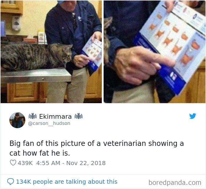 Di sebuah rumah sakit hewan, seekor kucing melihat ukuran badan nya sendiri. Istimewa/Dok. Boredpanda/carson__hudson.