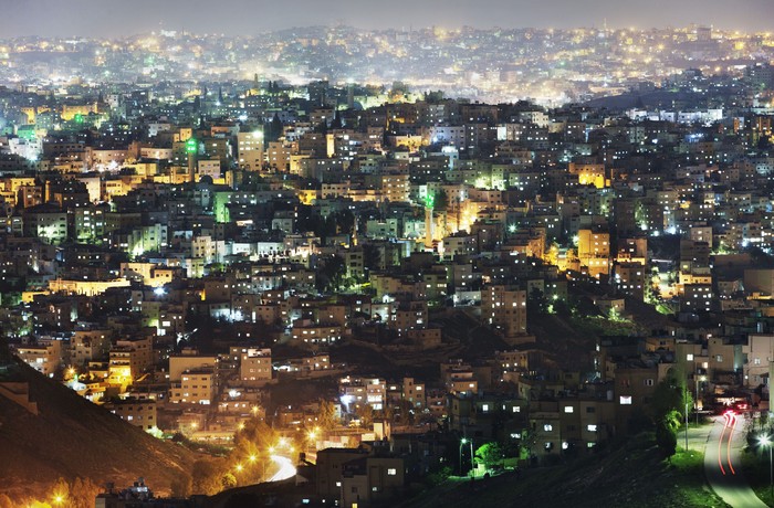 Potret kota Amman di Yordania, di kala malam juga tak kalah menarik dan selalu jadi perhatian dalam bidikan kamera. Adam Pretty/Getty Images.