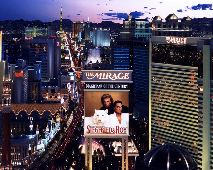 Las Vegas di Amerika Serikat, jadi salah satu kota yang tak pernah tidur. Aktivitas warganya yang tanpa henti membuat kota ini nampak mempesona dengan kilauan lampu yang menghias kota tersebut di malam hari. Photo courtesy of Siegfried & Roy/The Mirage via Getty Images.